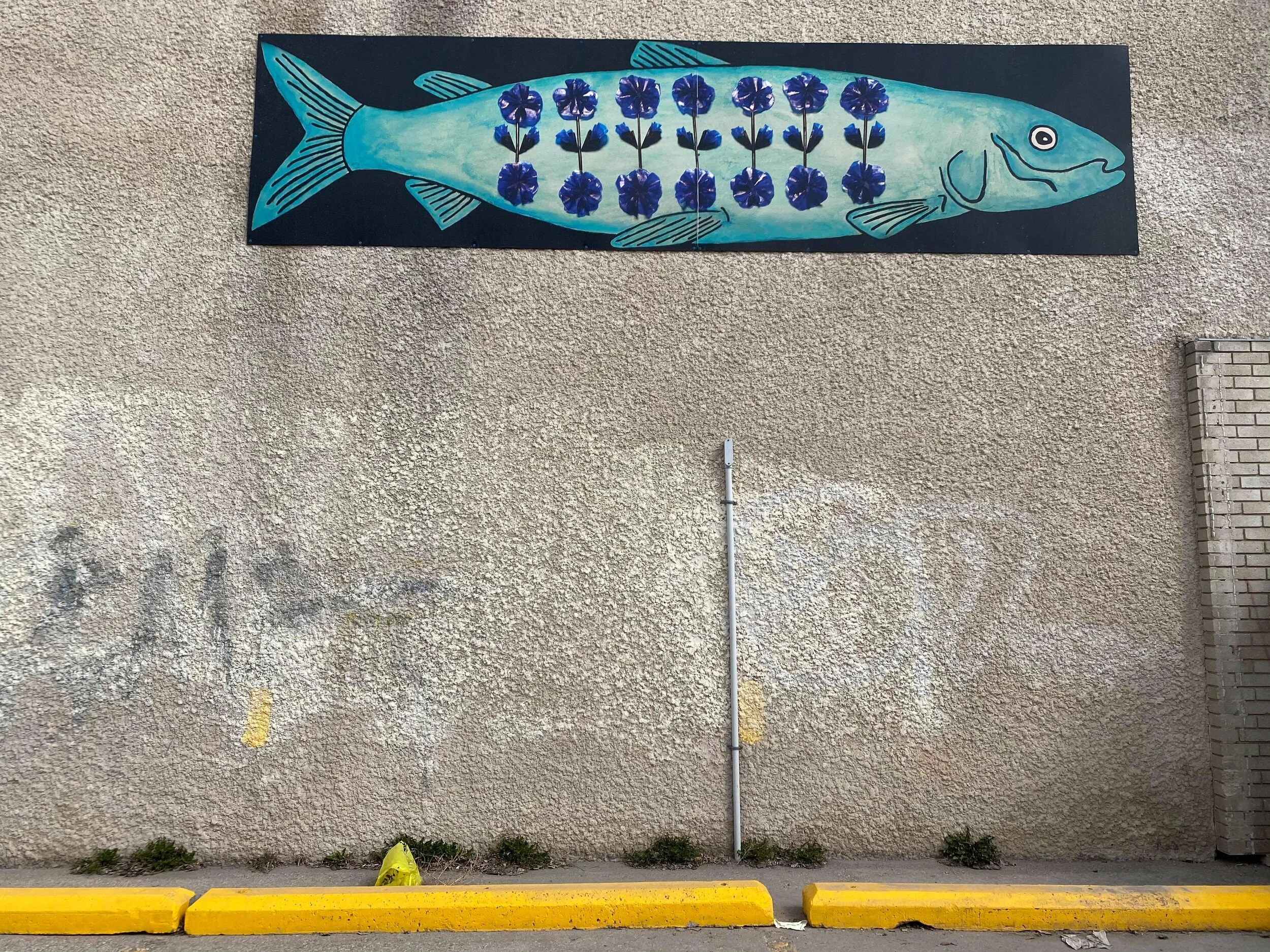 Their arts practice currently focuses on fish scale art, a land-based arts practice that includes harvesting fish, processing and cleaning the scales, as well as the vertebrae and bones to create intricate florals.